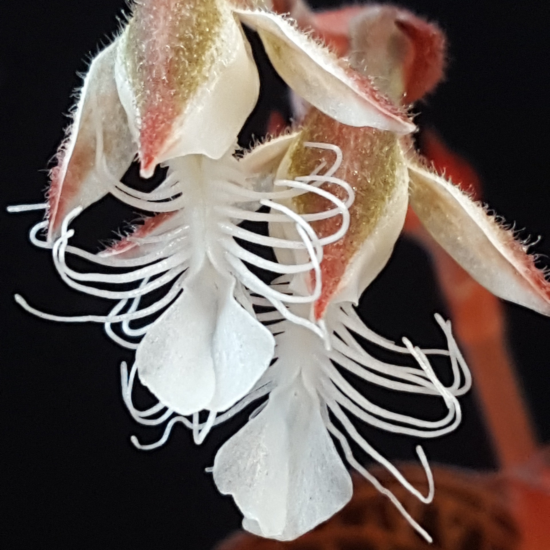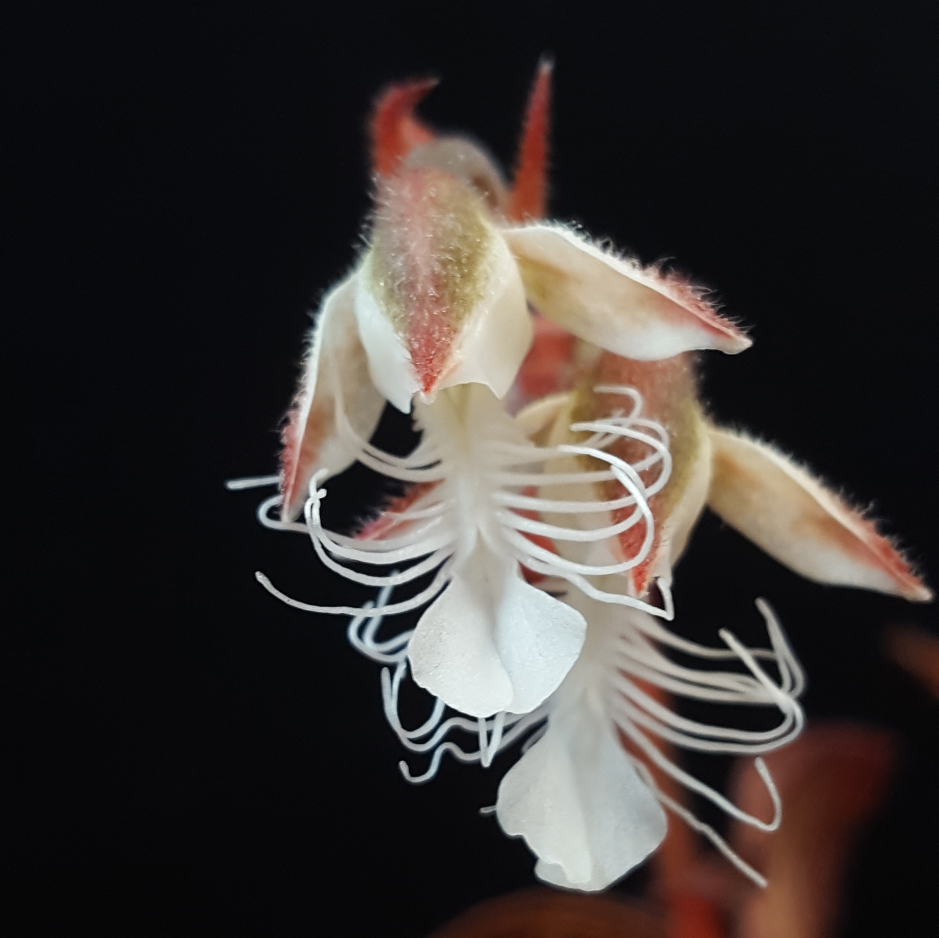 Anoectochilus albolineatus 'Ladies Best Friend' not only impresses with its leaf color, but also with its amazingly large flowers.
