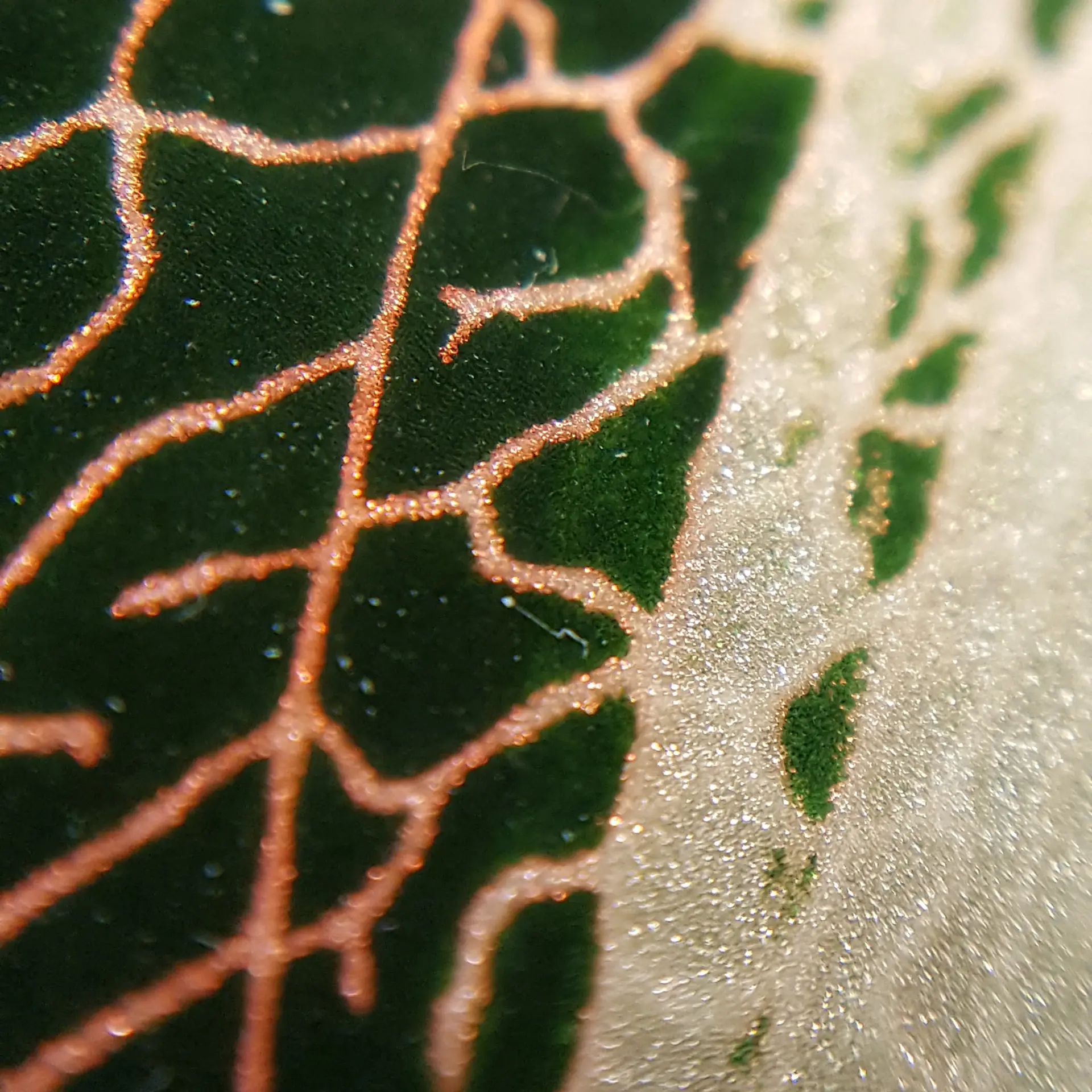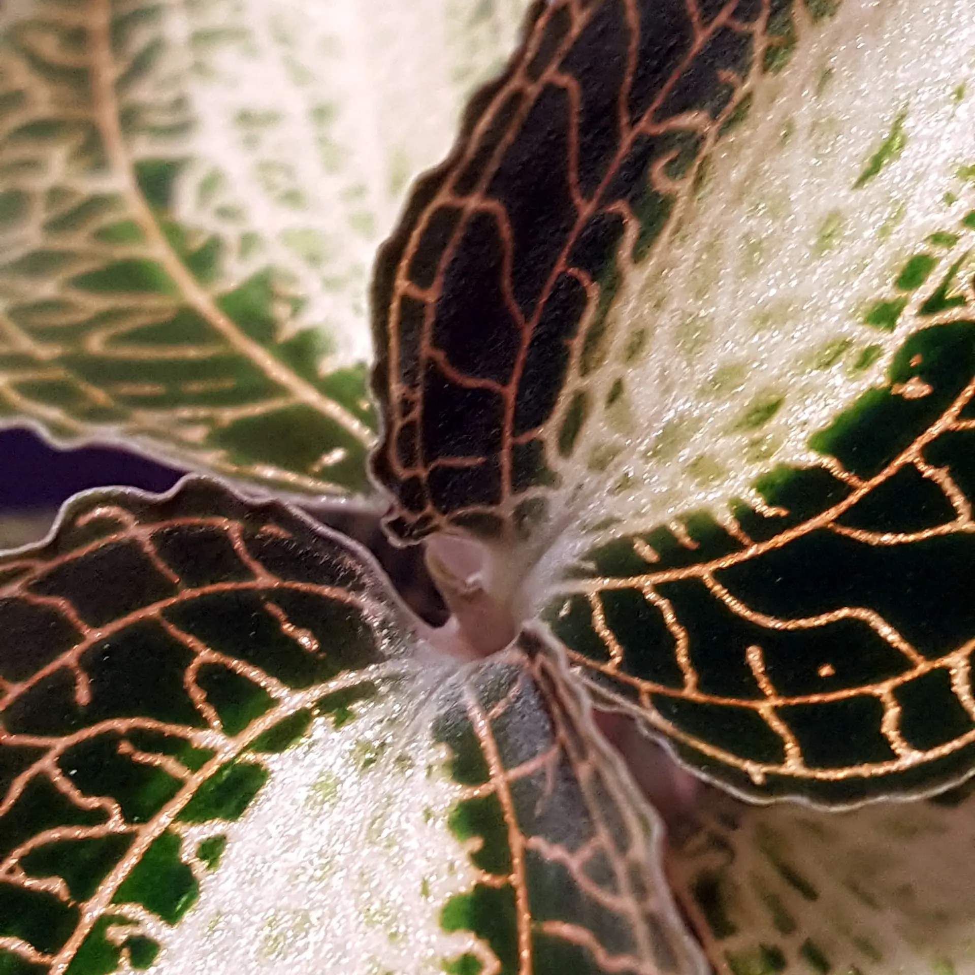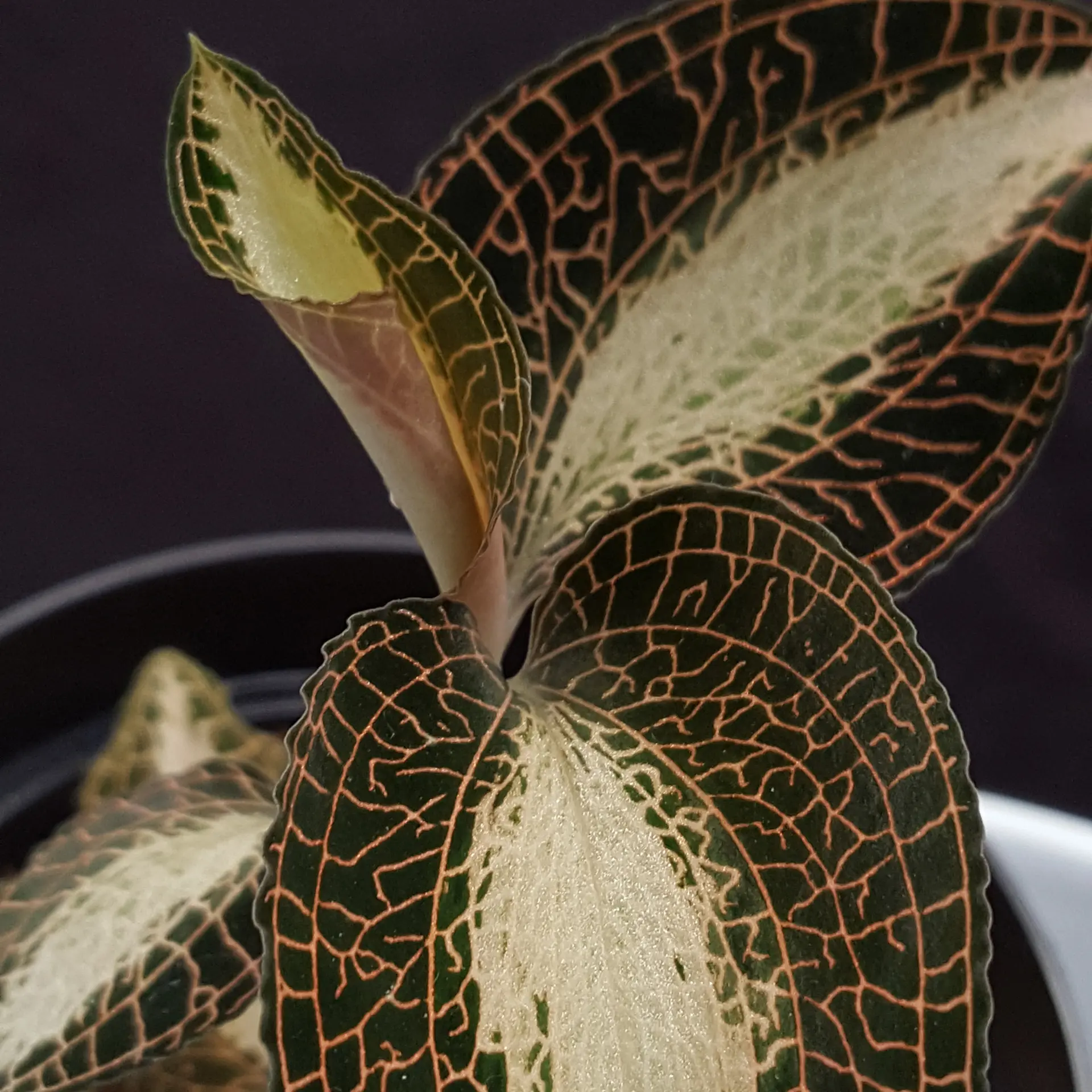The leaves of the jewel orchid Anoectochilus roxburghii ‘Dreamcatcher’ (Wall.) Lindl. 1832 are truly a captured dream: a strongly spreading central vein is interwoven with a network of golden yellow veins ... Take the time to take a closer look at these leaves in the sunlight ... You will be enchanted. This Southeast Asian medicinal plant is certainly one of my favourite jewelled orchids. It thrives in a temperate environment and does not like direct sunlight. Overly moist substrate is also detrimental, but the Sphagnum moss should never be allowed to dry out completely. The pictures shown are examples, the plant you purchase is similar to the pictures.