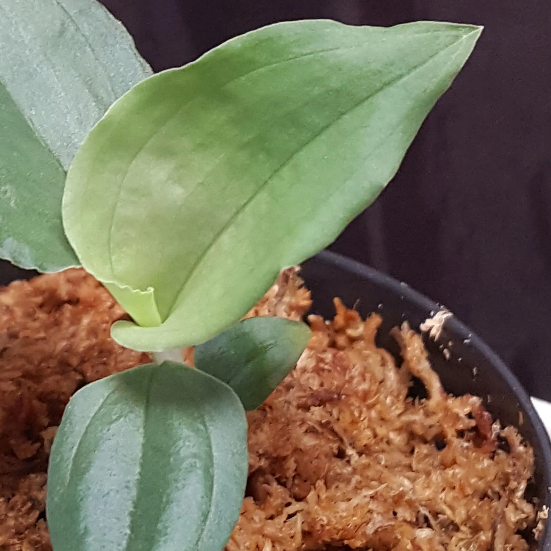 Goodyera viridiflora ‘Surprise’ (Blume) Blume 1858 has been known for a long time, but is rarely cultivated, even though it is easy to grow. This is reflected in its wide distribution area. The surprisingly large flowers of this jewel orchid are the main reason for its popularity. Up to 20 flowers can be found on one inflorescence. The large flowers are all the more astonishing as Goodyera flowers are normally very small. We cultivate them at room temperature, keep the substrate moderately moist and fertilise with fertiliser sticks. Direct sunlight should also be avoided with this jewel orchid. Its stem creeps on the substrate and sprouts new roots at the internodes, whereas the younger part of the Goodyera viridiflora stands upright. The pictures serve as an example, you are buying a similar plant.